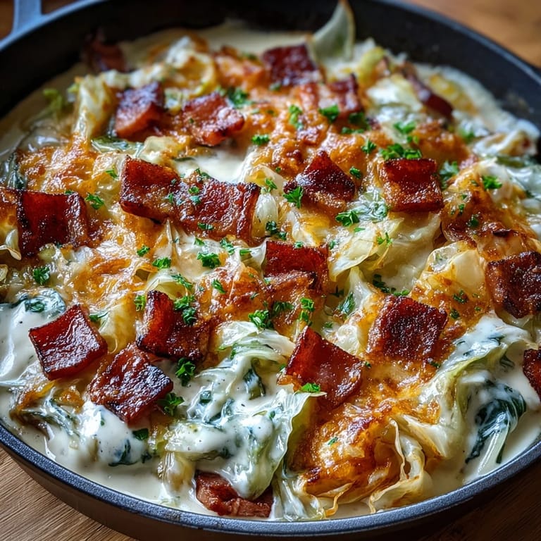 Save There's something deeply satisfying about a skillet that does all the work for you, and this creamy cabbage and ham dish became my go-to on nights when I needed comfort but couldn't afford to spend hours cooking. My neighbor mentioned it one evening while we were chatting over the fence, and I remember thinking how simple it sounded—almost too simple. But the first time I made it, the whole kitchen filled with this rich, savory aroma that made everyone stop what they were doing. Now I can't count how many times I've returned to it.