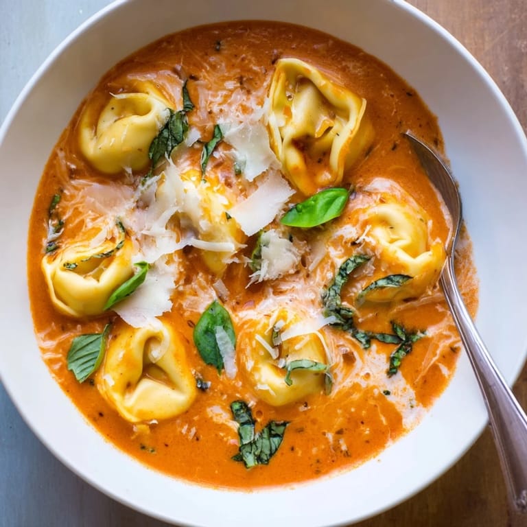 Save A comforting, velvety soup featuring cheese-filled tortellini in a rich tomato-basil broth, finished with a touch of cream.