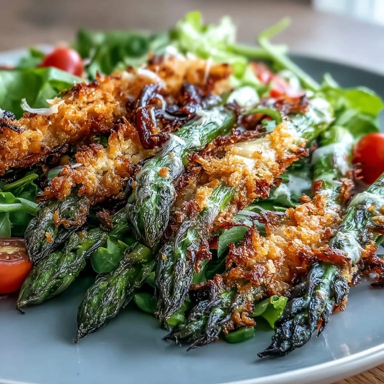 Save One spring afternoon, I was standing at the farmer's market with a bunch of asparagus in hand, wondering how to turn it into something more exciting than the usual roasted side dish. A friend mentioned she'd been coating vegetables in cheese and breadcrumbs, and something clicked—why not make that the star of a salad? The first time I served this, watching people's faces light up as they bit into those crispy, golden spears made me realize I'd stumbled onto something special.