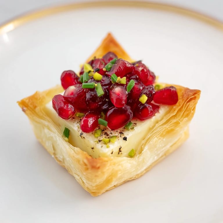 Contains Milk (Brie cheese), Wheat/Gluten (puff pastry), Tree nuts (if using pistachios); always check pastry labels for potential allergens