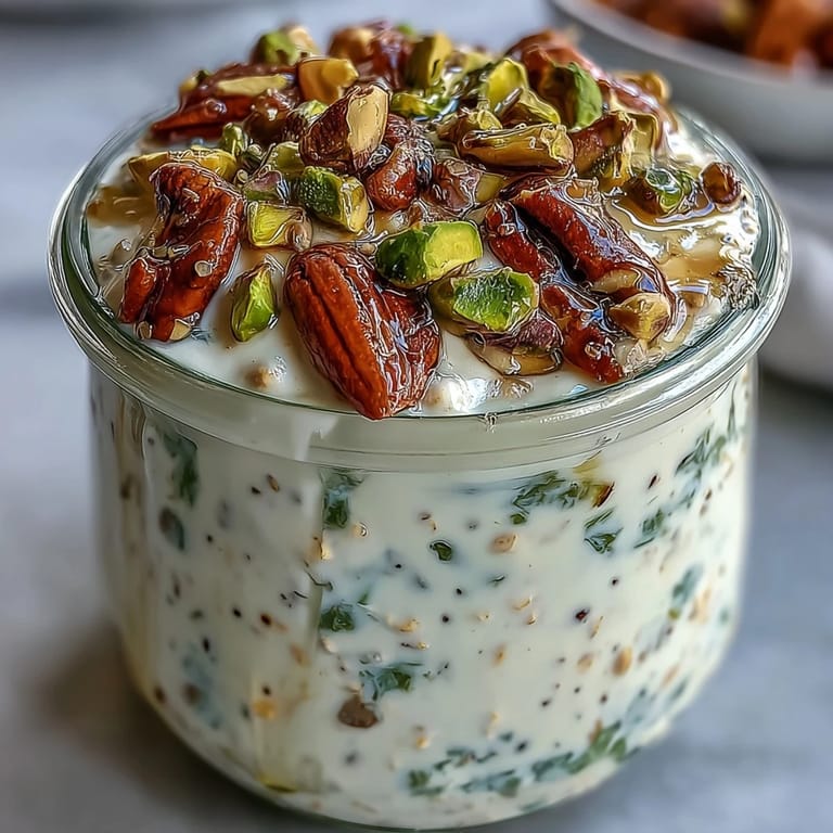 Save Start your morning with these Pistachio Overnight Oats, a creamy and protein-packed breakfast that requires just five minutes of preparation. This nutritious meal combines the heartiness of rolled oats with the crunch of pistachios and the nutritional boost of chia seeds for a quick and satisfying start to your day.