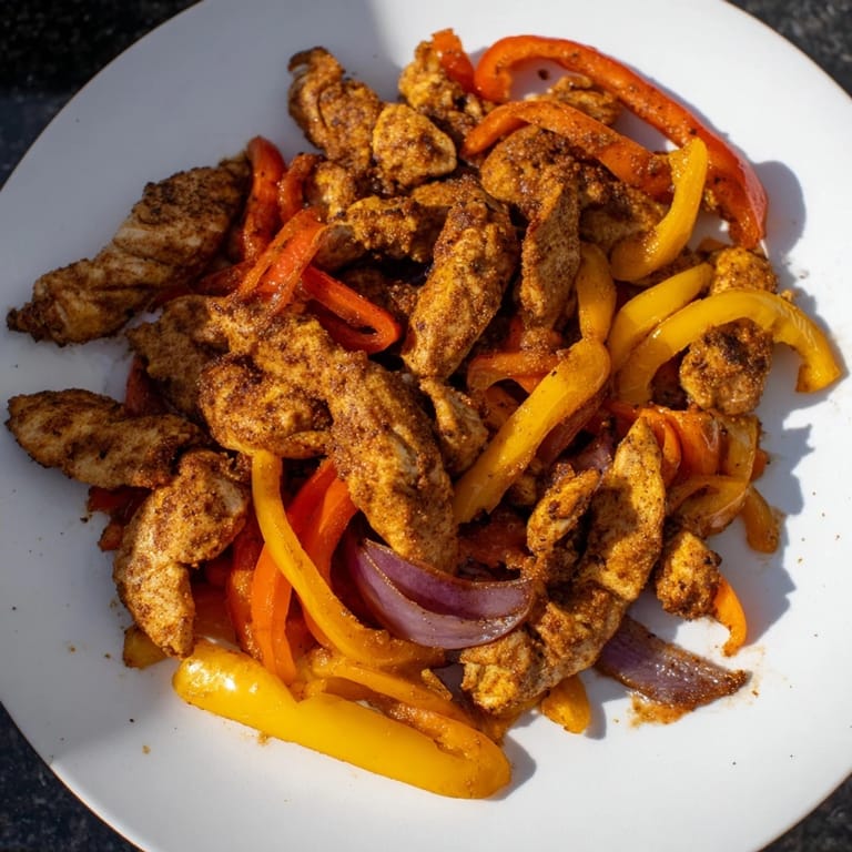 Save A vibrant, easy weeknight meal featuring juicy chicken strips, colorful bell peppers, and onions, all roasted together on one pan for minimal cleanup and maximum flavor.