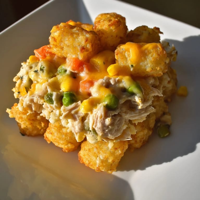 I made this for my kids on a chilly weeknight and everyone went back for seconds. Using leftover chicken saved time and the tater tots brought everyone to the table with smiles.