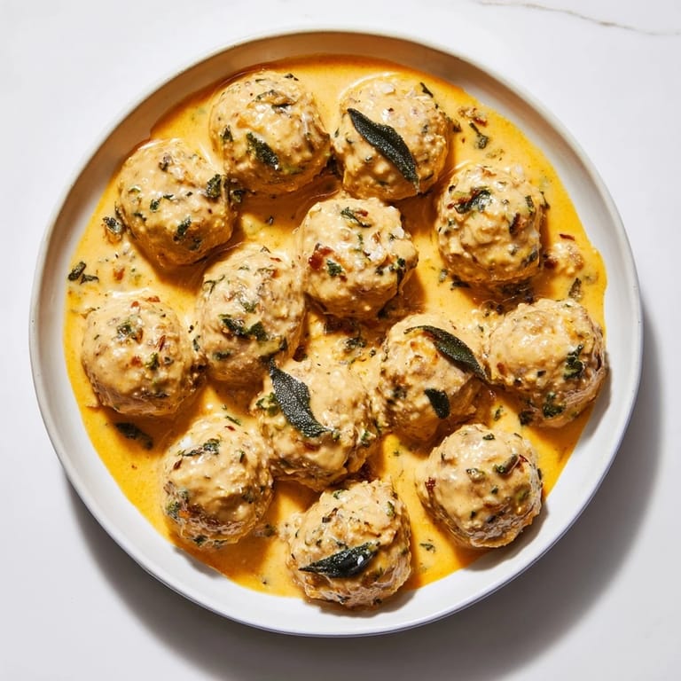 Save Tender turkey meatballs paired with a creamy, aromatic pumpkin sage sauce—perfect for a comforting autumn dinner.