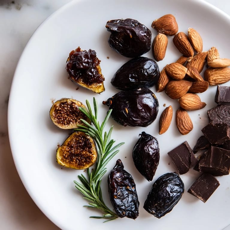 - Start with olives clustered in two or three spots rather than one scattered mass, then tuck figs between them, add a small ramekin of fig jam, scatter dark chocolate pieces, and nestle almonds into gaps. The arrangement should look intentional but not rigid—like you were thinking about balance while placing each element.