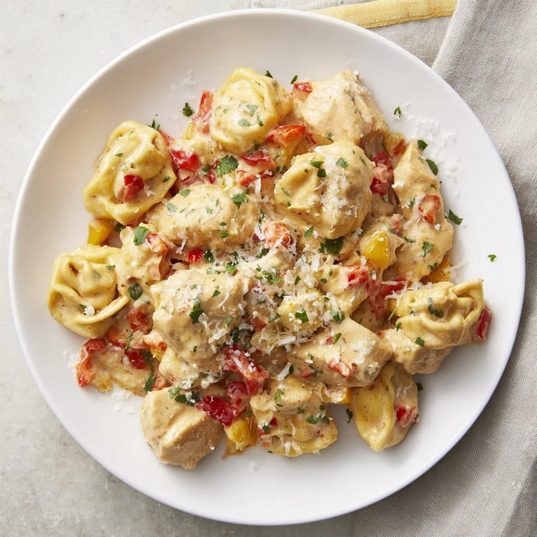 Save A vibrant and flavorful pasta dish featuring tender chicken, cheesy tortellini, and a creamy Cajun garlic Parmesan sauce. Perfect for a quick weeknight meal with a spicy kick.